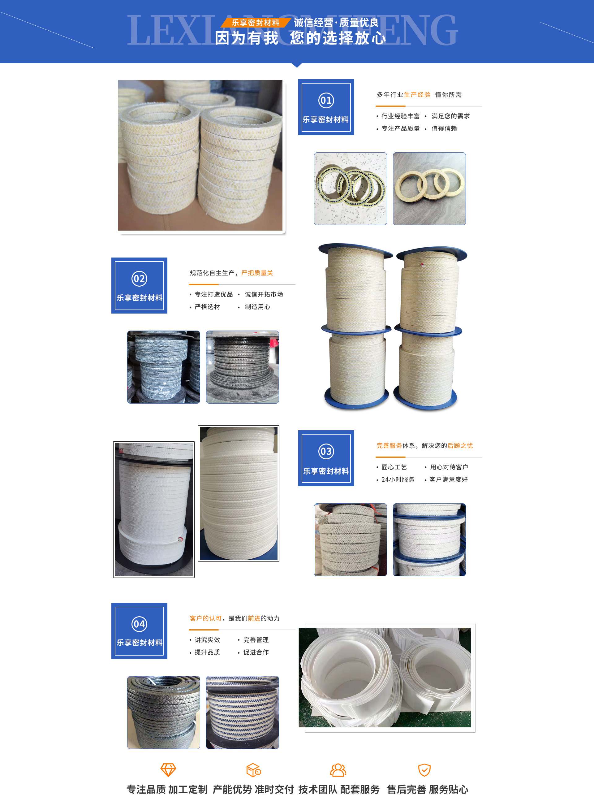 芳綸盤根,四氟盤根,碳素盤根,石棉盤根,芳綸墊片,石棉浸液盤根-大城縣樂(lè)享密封材料有限公司